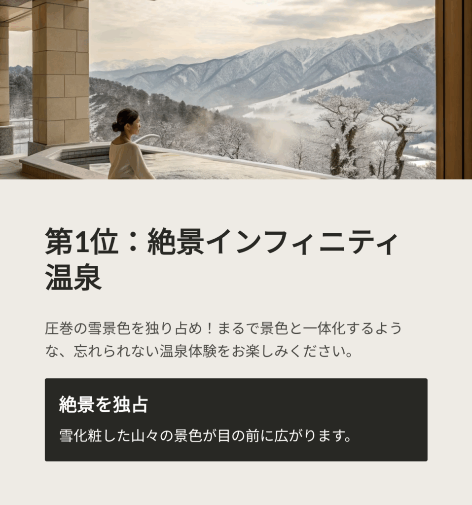 【第1位】雪景色を独り占め「絶景インフィニティ温泉」
