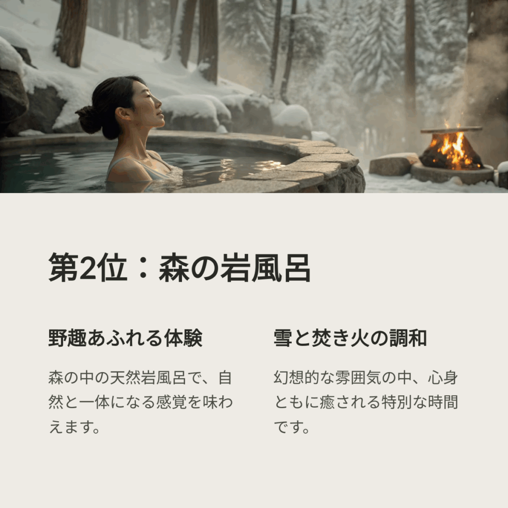 「まるで森の中で動物たちと一緒に温泉に入っているような、不思議な感覚でした。