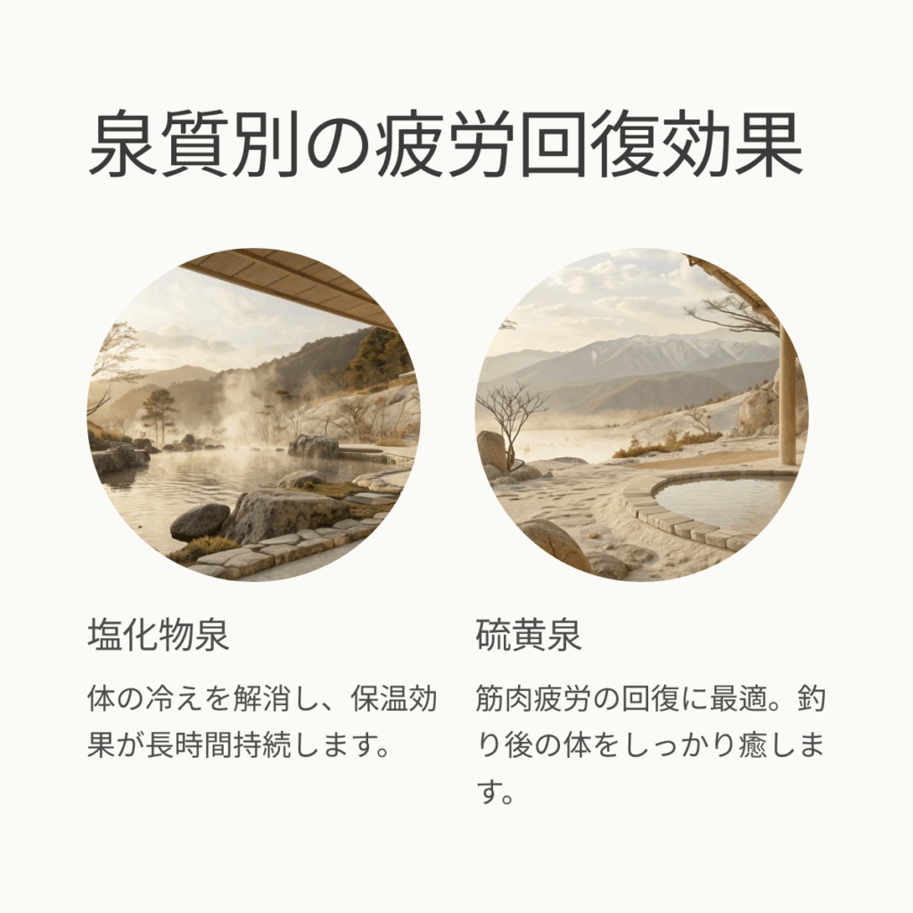 4. 泉質(せんしつ)の選定:釣りの疲労に最適な成分とは