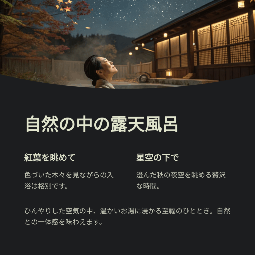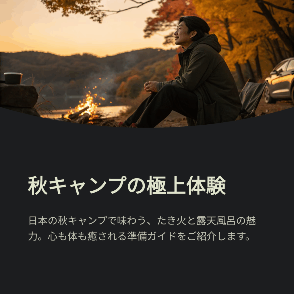 日本の秋が凝縮された「たき火」と「露天風呂」キャンプの魅力をご紹介しました。