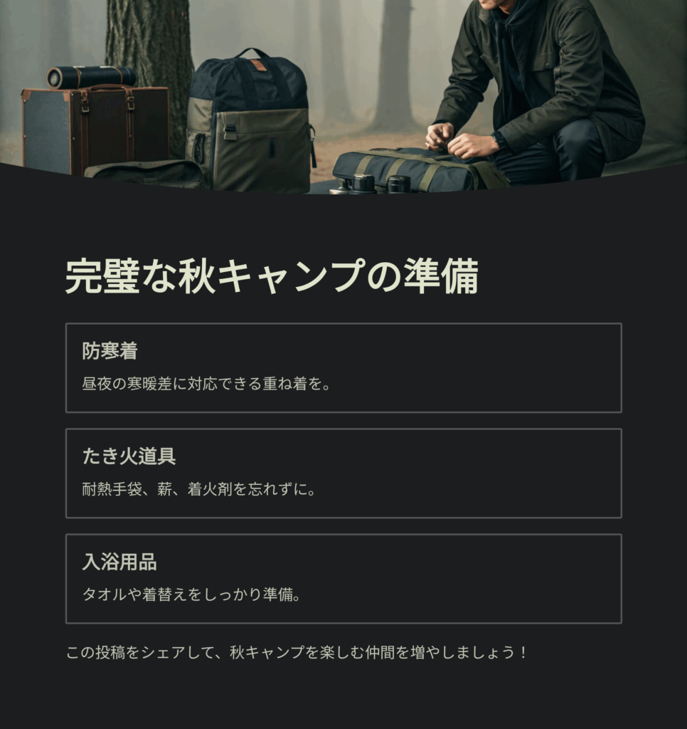 まとめ:準備を整えて、最高の秋キャンプ体験を