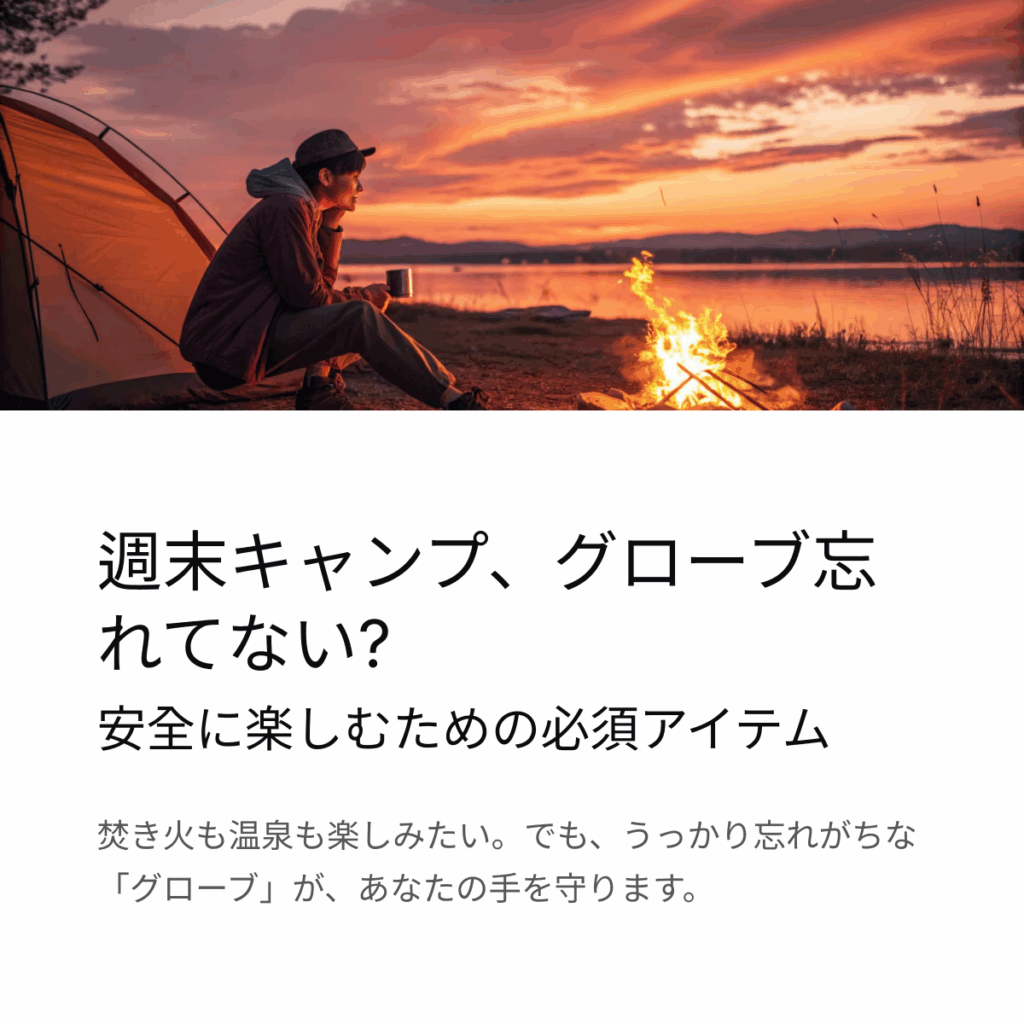 「グローブ」は、そんなうっかり忘れがちなアイテムの代表格ですが、安全なキャンプ活動には絶対に欠かせません。