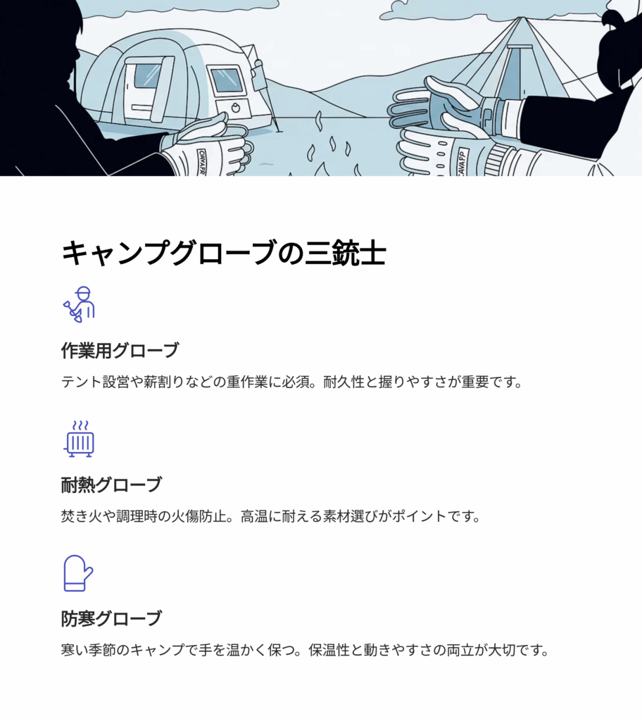 あなたはもはや単なるグローブの消費者ではなく、自分だけの「キャンプグローブシステム」を構築したスマートなキャンパーなのです。