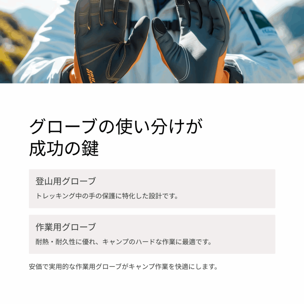 高価なアウトドア専用品も魅力的ですが、八甲田山の厳しい自然の中では、信頼できる「作業用グローブ」こそが、あなたのキャンプ体験を根本から支えてくれるはずです。