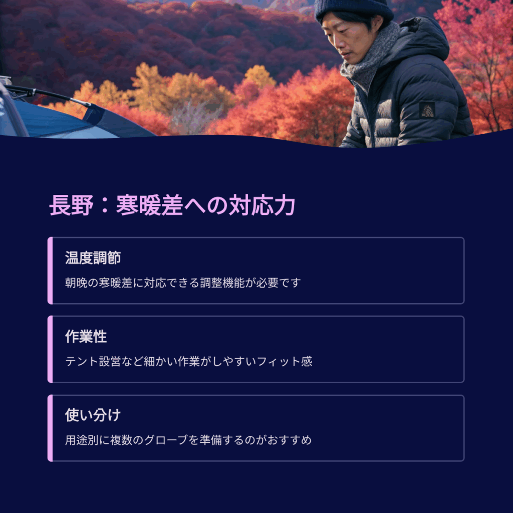 それぞれの地域の特性を理解し、ご自身のキャンプスタイルと照らし合わせることで、本当に必要なグローブが見えてきます。