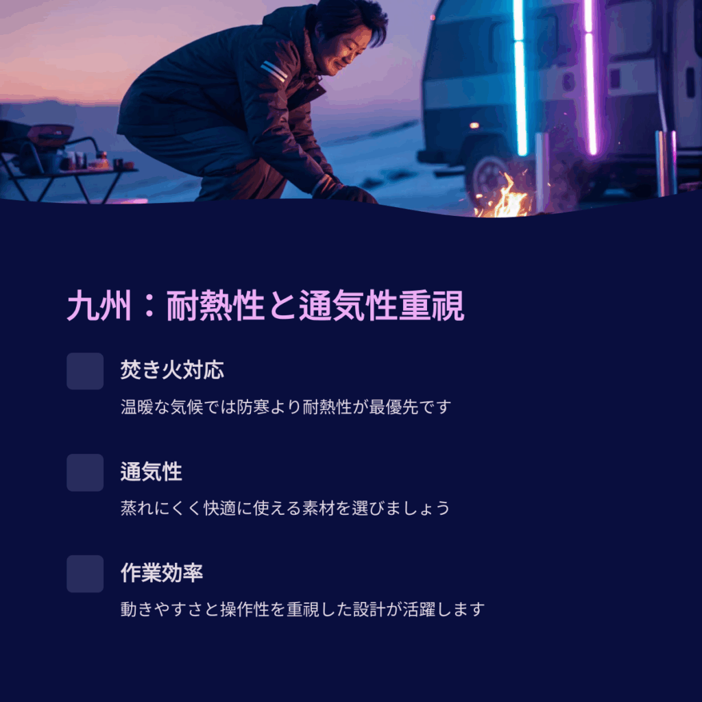3. 【九州エリア】温暖さと湿気:耐熱性・作業性重視